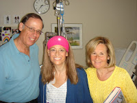On day 3 I got to attend the "Look Good, Feel Better" program which is a service that provides women with makeovers and cosmetics while they are in the hospital. It's kind of funny to feel so horrible but look so good! Check out the picture of me with my mom and dad right after my make-over. Looks like I am ready for the Cancer Ball!